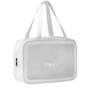 תיק איפור גדול בצבע ורוד או לבן מבית Mika Professional, מעוצב בקווים יוקרתיים עם נוחות שאין כמותה.